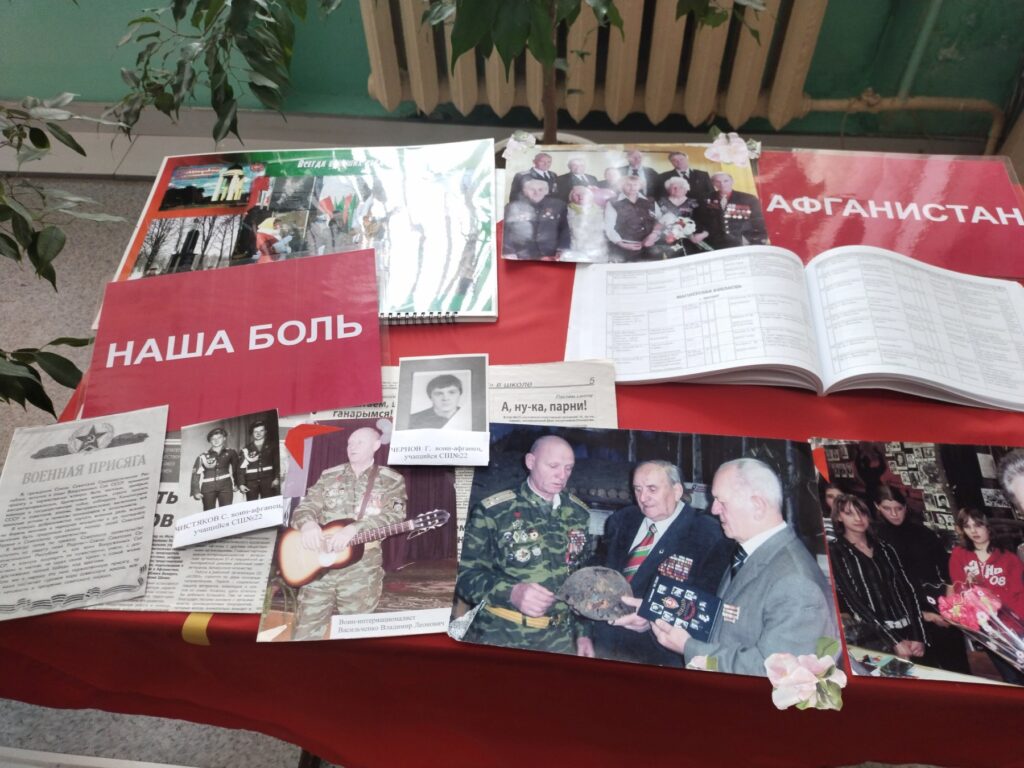 20 февраля для учащиеся 5-х классов был проведён информационный час «Эхо Афганской войны». Ребята ознакомились с материалами школьного музея о войне в Афганистане: фотографиями выпускников нашей школы и воинов-интернационалистов, которые служили в Афганистане, альбомом «Афганская война (1979 – 1989) о судьбе бывшего воина-интернационалиста, ныне судьи Могилевского областного суда, Гладкого Николая Николаевича.