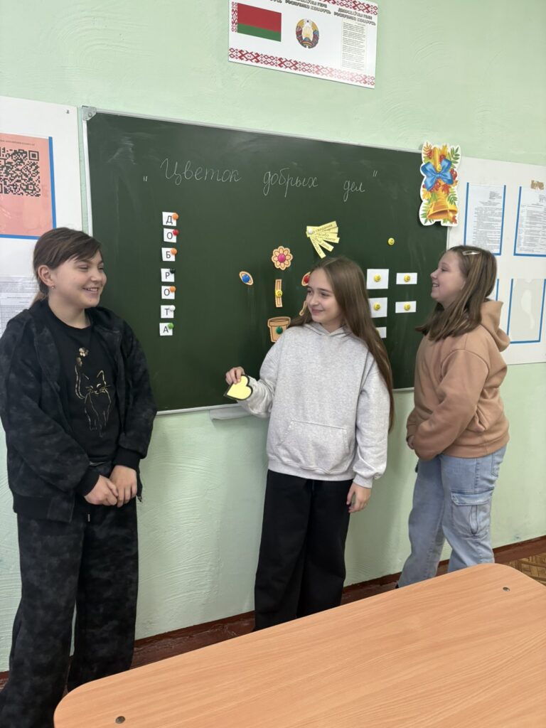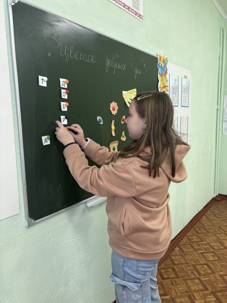Ученикам было предложено создать символический «Цветок добрых дел». Каждый лепесток — это одно доброе дело, которое участники совершили или планируют совершить.