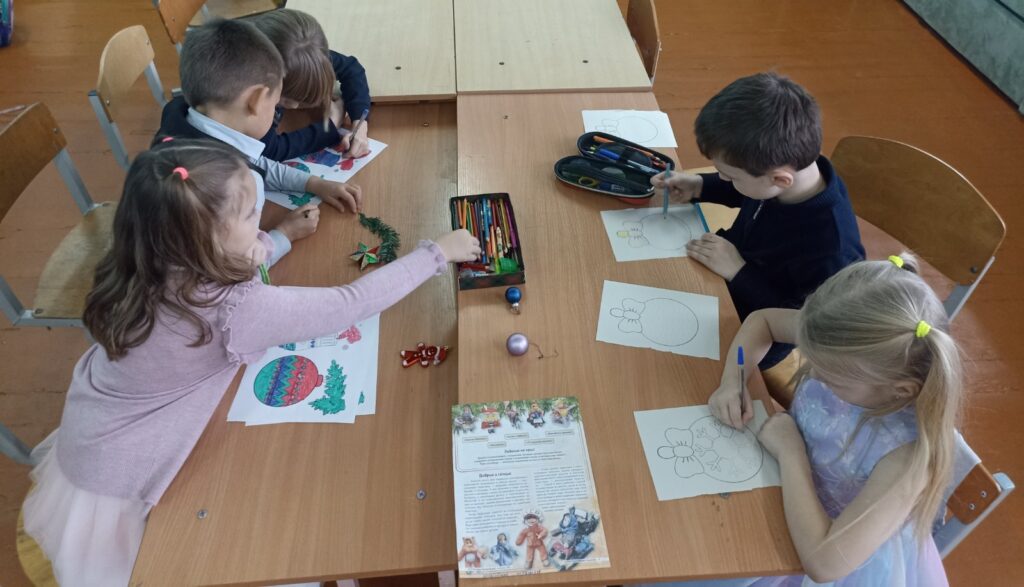 Девочки и мальчики рисовали свои елочные украшения и продумывали каждый узор. В конце мероприятия вместе с воспитателем из бумаги сделали Деда Мороза, который остался жить в кабинете ГПД и создает праздничную атмосферу. Праздник очень понравился учащимся и настроение было отличным.