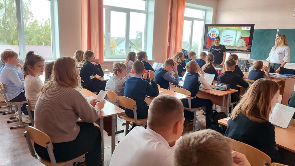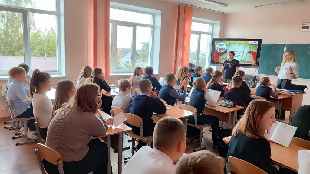 30.09.2025 сотрудники библиотеки рассказали учащимся ГУО “Средняя школа 22 г Могилёва” о ключевых событиях Великой Отечественной войны, связанных с городами-побратимами Могилёва из Российской Федерации, их героях и местах воинской славы. Завершился урок мини-турниром, победители которых в ноябре 2025 года примут участие в большом интеллектуальном турнире «Одна на всех Победа!».