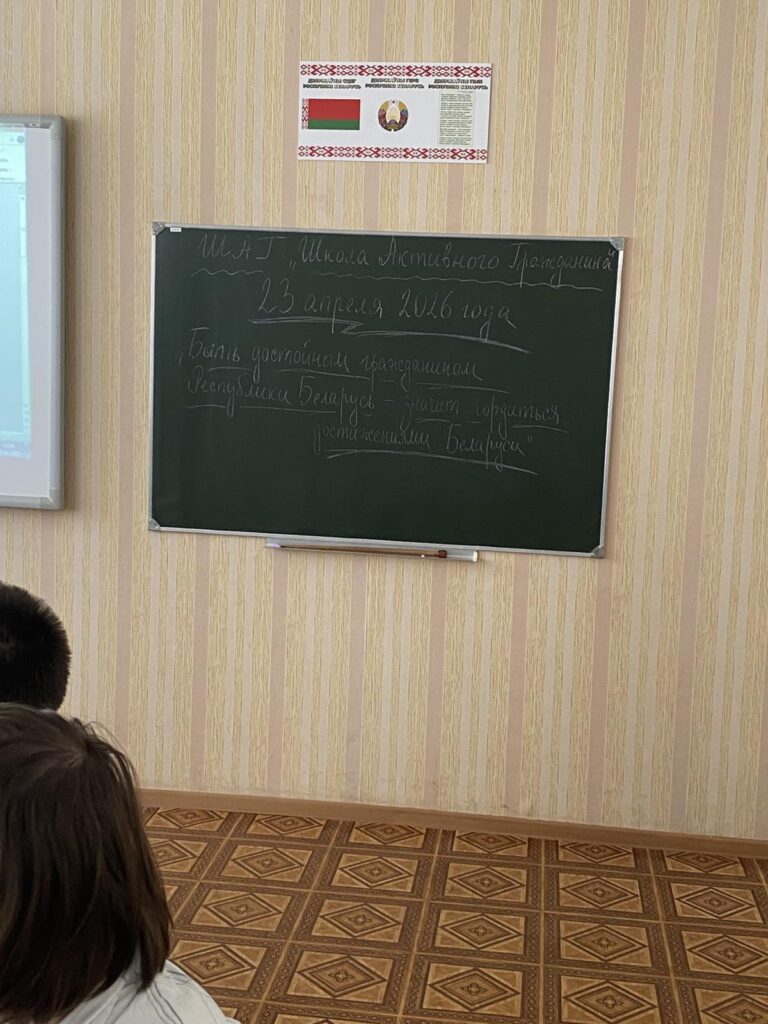 23.04.2026 г. в рамках информационно-образовательного проекта “ШАГ – Школа Активного Гражданина” для учащихся 8-11 классов было проведено мероприятие по теме: “Быть достойным гражданином Республики Беларусь – значит гордиться достижениями Беларуси”. В ходе мероприятия на этапе ШАГ 1 при помощи презентации “Мы узнаем” были актуализированы знания учащихся о достижениях страны в области экономики, образования и науки, спорта, медицины за последние годы. На этапе ШАГ 2 “Мы рассуждаем” состоялось знакомство с приглашенным гостем, Понкратенковым Макаром Владимировичем. Учащиеся имели возможность задавать вопросы приглашенному гостю, а также с интересом включились в обсуждение темы. На этапе ШАГ 3 “Мы действуем” было организовано обсуждение конкретных мероприятий, акций и проектов, в которых хотели бы принять участие учащиеся с целью реализации своих инициатив во благо страны.